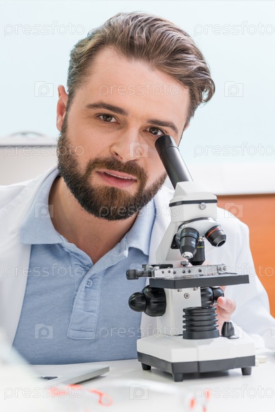 Бородатый ученый с микроскопом