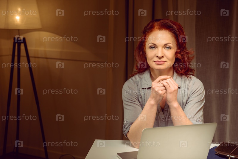 Зрелая женщина рядом с ноутбуком