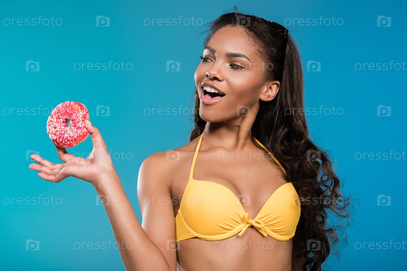 Женщина в купальнике с пончиком