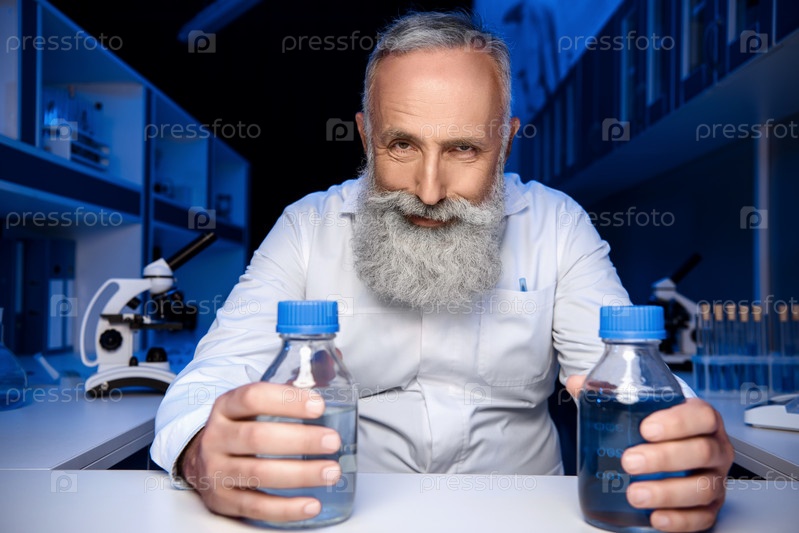 Портрет хитрого ученого в лаборатории