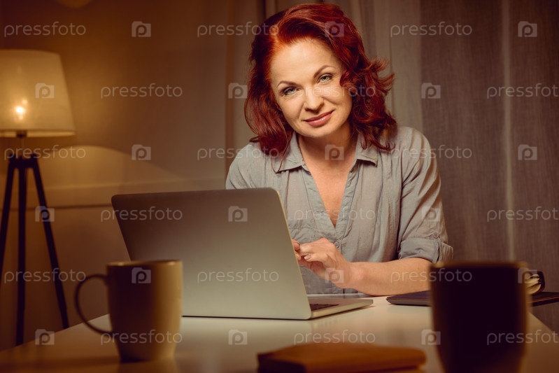 Зрелая женщина с ноутбуком