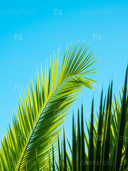 Узор пальмовых листьев на фоне голубого неба