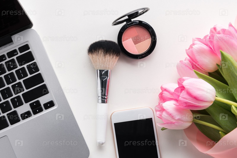 Женские аксессуары, гаджеты и букет цветов