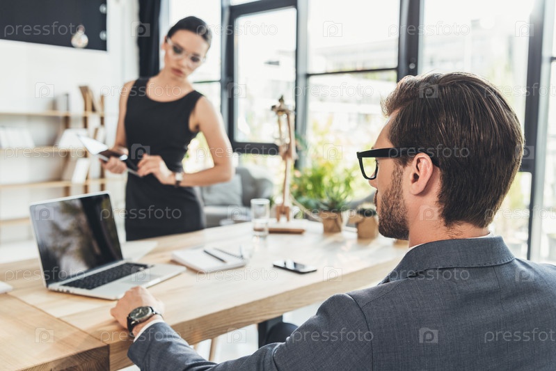 Молодой бизнесмен в костюме с секретарем