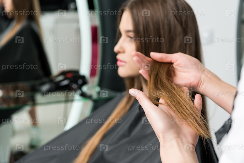 Молодая женщина с красивыми волосами в парикмахерской