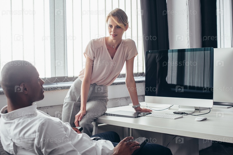 Привлекательный молодой предприниматель с коллегой