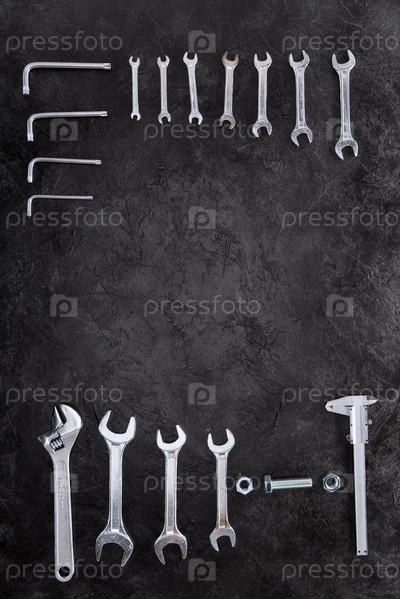 Набор гаечных ключей и шестигранников на черном