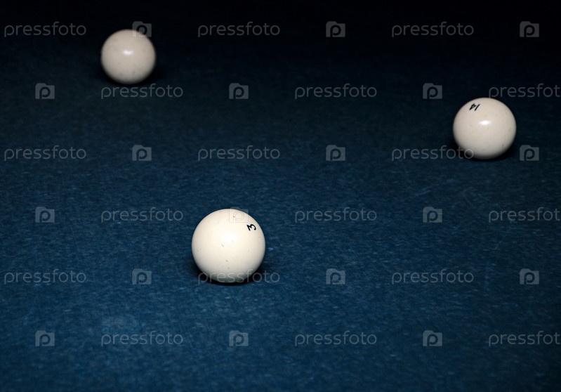 Три бильярдных шара на синем бильярдном столе