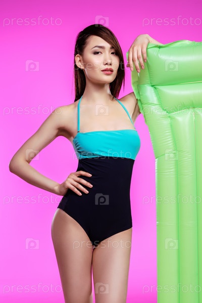 Соблазнительная молодая женщина Азии в купальнике