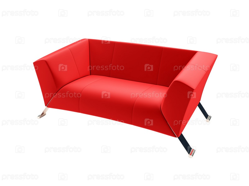 Красный диван, изолированный на белом фоне