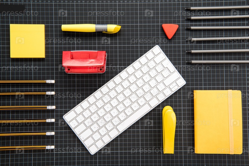 Канцелярские принадлежности и гаджеты на черном
