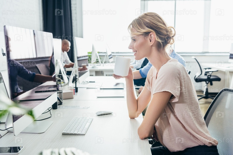 Молодой предприниматель с кофе в офисе