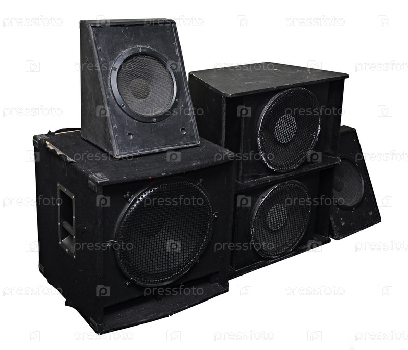 Старые аудио колонки на белом фоне