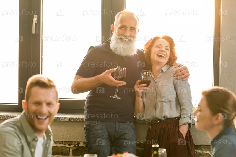Обнимая жену с бокалами вина
