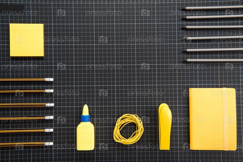 Набор канцтоваров на черном фоне