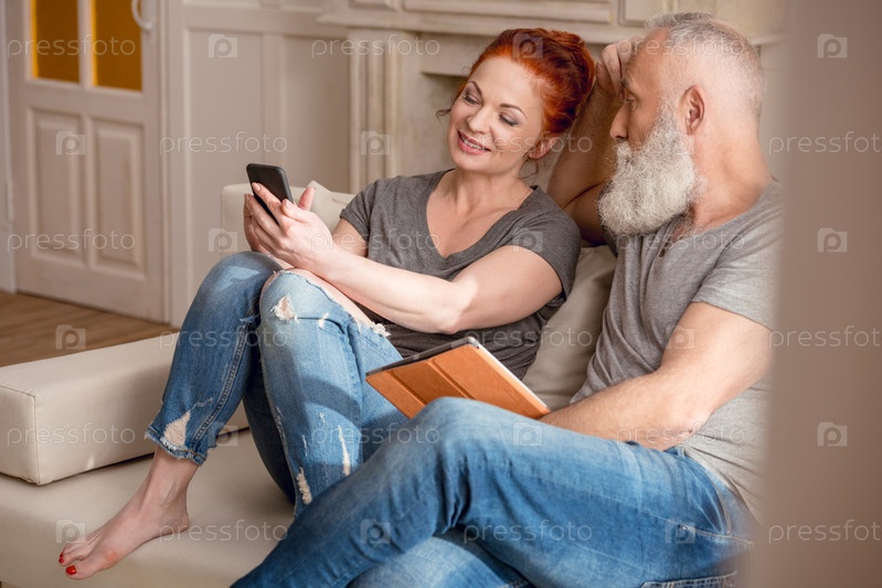 Красивая зрелая пара с гаджетами