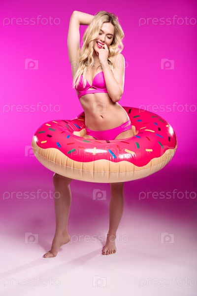 Красивая блондинка с плавательным кругом
