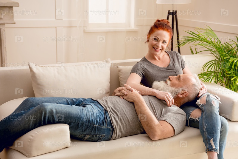 Счастливая пожилая пара дома