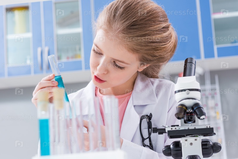 Рассматривая пробирку с реагентом в лаборатории