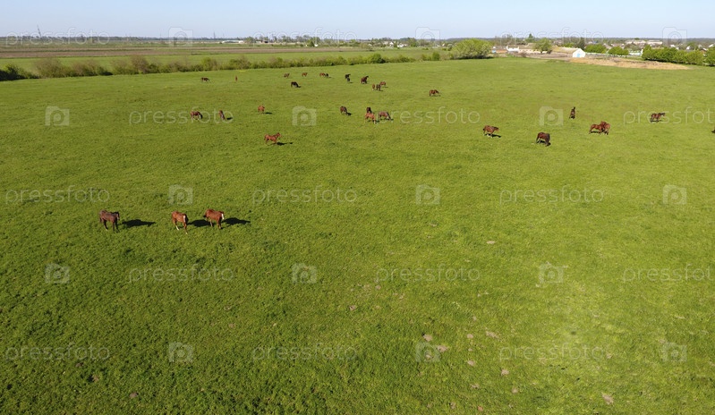 Выпас лошадей на поле