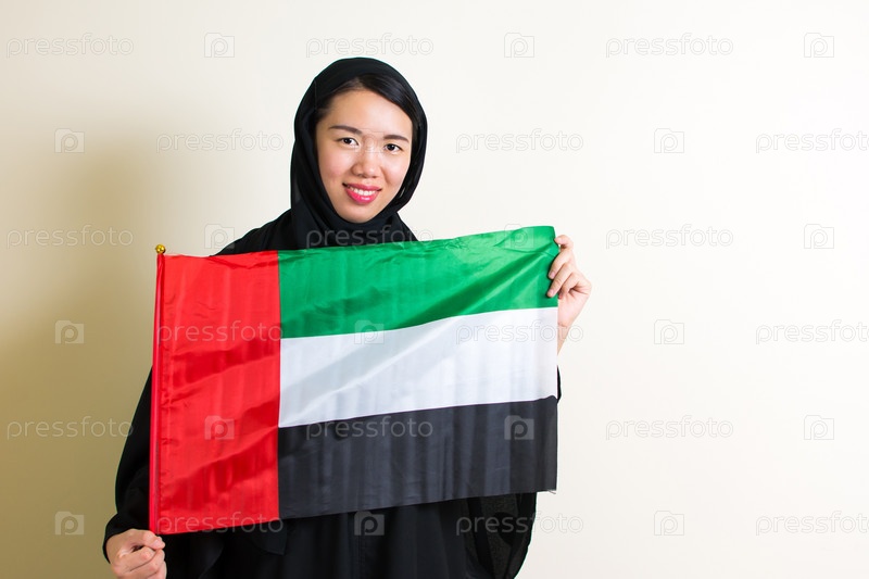 Мусульманская женщина Объединенных Арабских Эмиратов с флагом