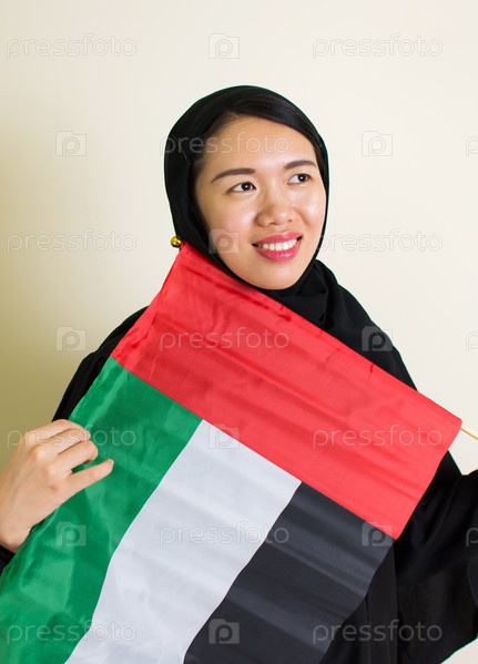 Мусульманская женщина с флагом ОАЭ