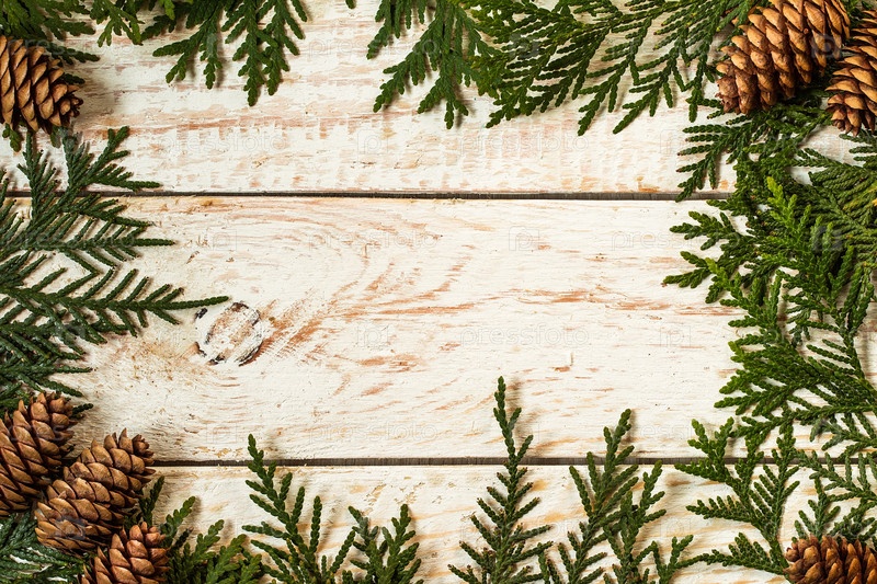 Рамка из рождественских ветвей с шишками