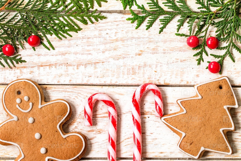 Рождественский фон с пряниками и пихтами