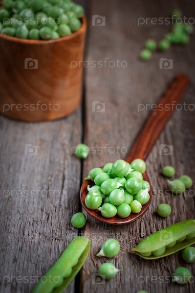 Свежий горох на деревянном фоне