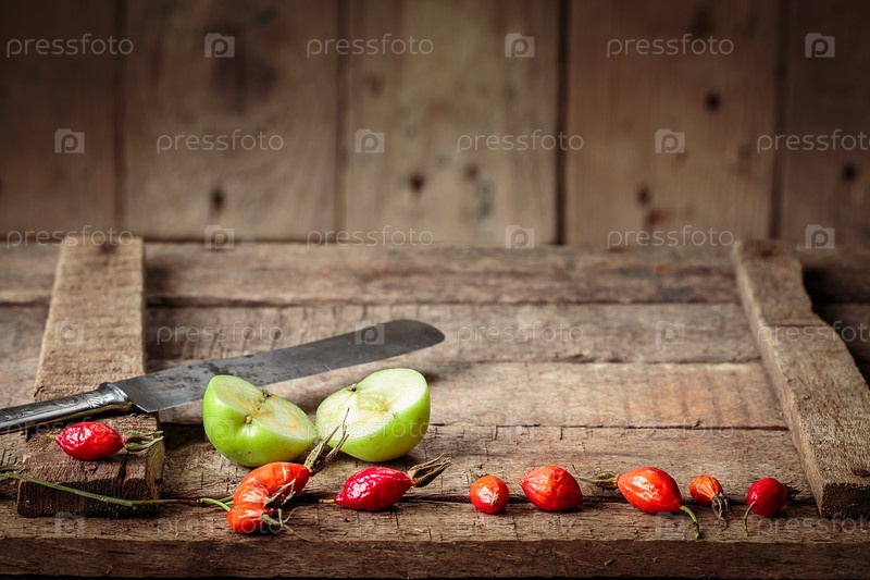Зеленые яблоки на старой коробке