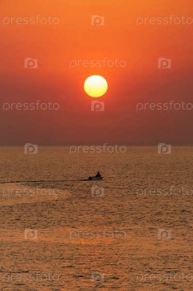 Лодка плывет на закате
