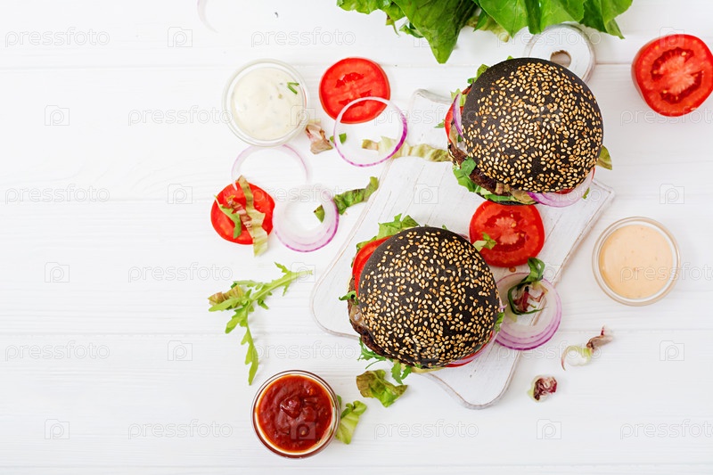 Черные гамбургеры с сочной говядиной