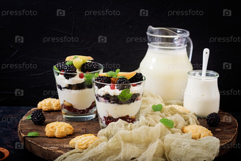 Сливочный десерт - тирамису с ежевикой и красной смородиной