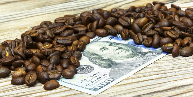 Зерна кофе на долларе