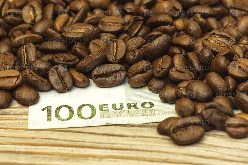 Зерна кофе на евро