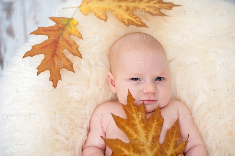 Ребенок с осенними листьями
