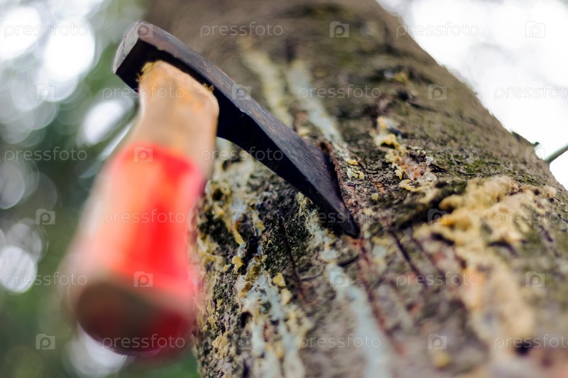 Топор застрял в дереве