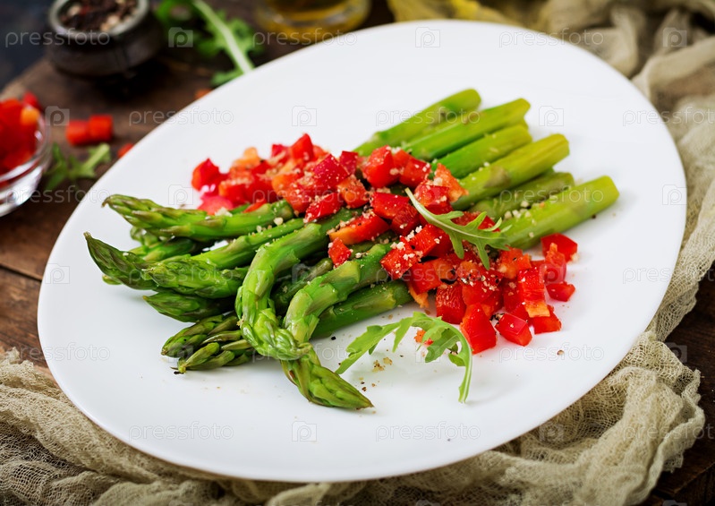 Теплый салат из обжаренной спаржи и сладкого перца