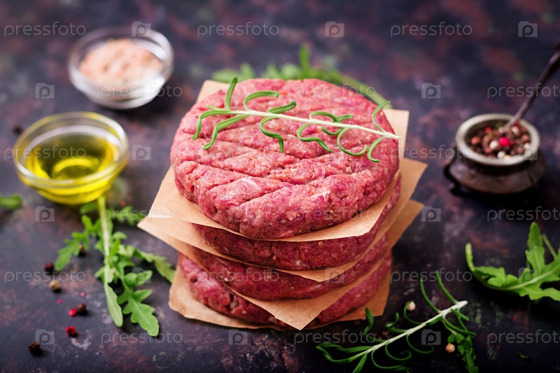 Свежий сырой домашний фарш для гамбургеров