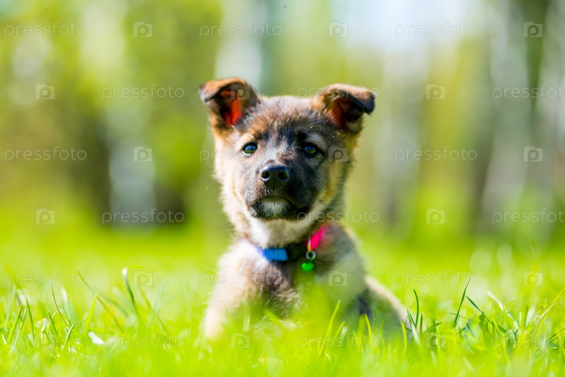 Щенок в зеленой траве