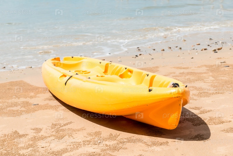 Желтый каяк на крае воды на песчаном пляже Таиланда