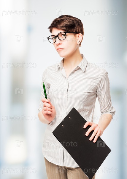 Строгая серьезная деловая женщина с папкой