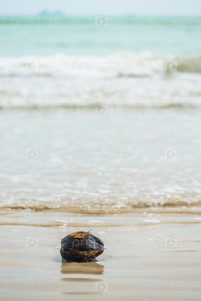 Старый кокос на песчаном пляже
