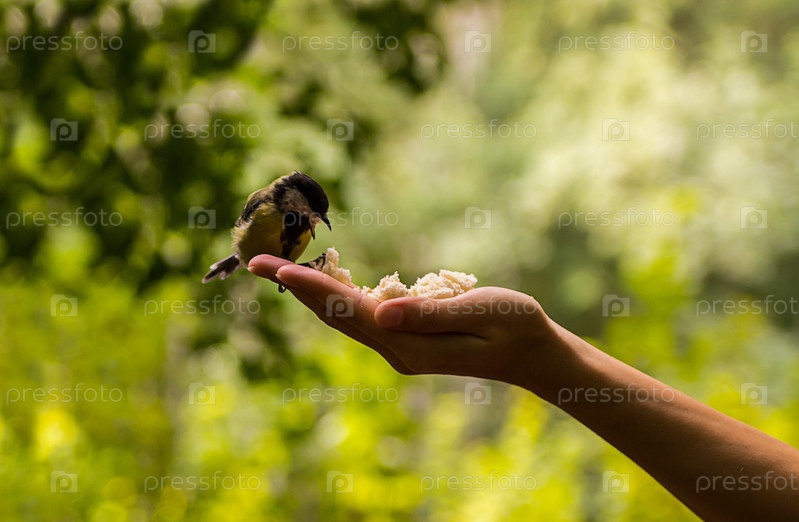 Синица есть хлеб на ладони