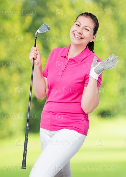 Эмоциональная девушка счастлива после игры в гольф