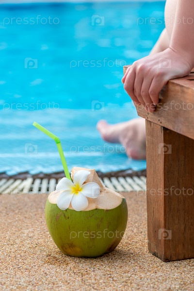 Женщина в шезлонге у бассейна