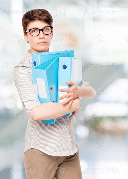 Женщина с синей папкой для документов в офисе