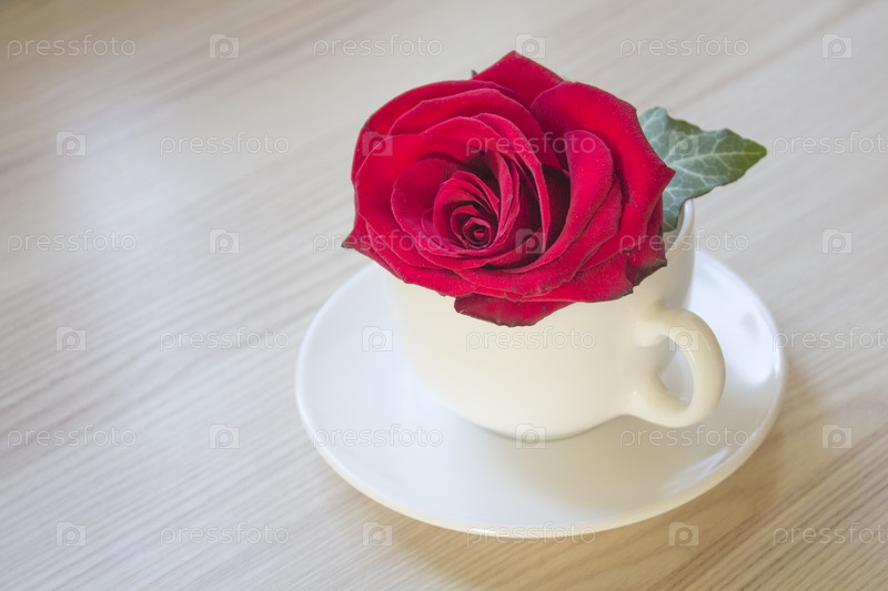 Красная роза в белой чашке