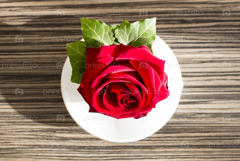 Красная роза в белой чашке