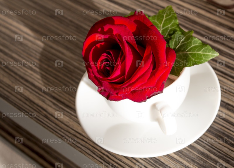 Красная роза в белой чашке